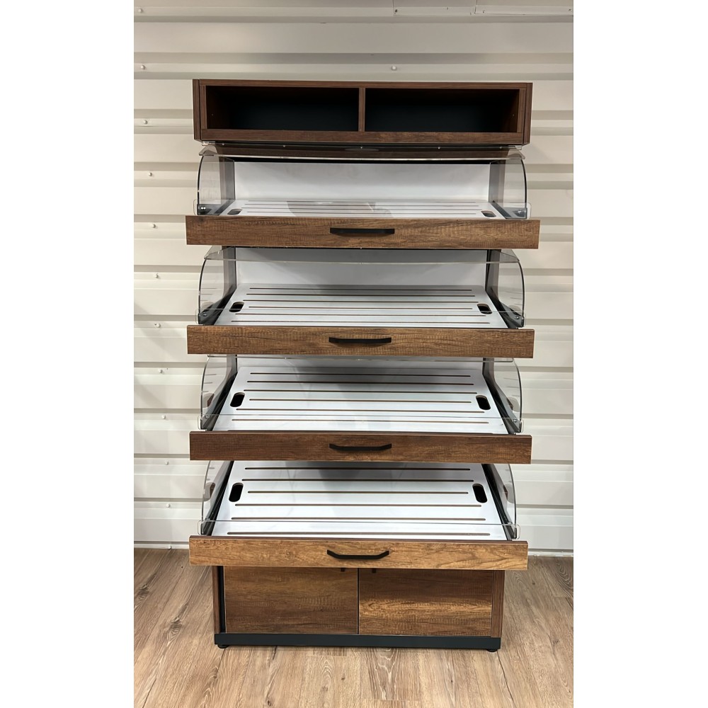 Structure : Fabriqué en bois avec une finition élégante et moderne, il s'intègre bien dans des environnements professionnels comme les boulangeries ou les magasins.