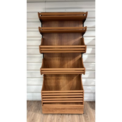 Le produit est un meuble de présentation en bois conçu pour exposer des produits alimentaires, des produits de boulangerie ou de pâtisserie. Voici ses principales caractéristiques :