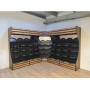 Fabriqué en bois et acier, le présentoir allie solidité et esthétique, s’intégrant parfaitement dans différents types de boutiques, marchés ou commerces alimentaires. Son design moderne et fonctionnel apportera une touche sophistiquée à votre espace de vente, tout en facilitant l’organisation des produits.