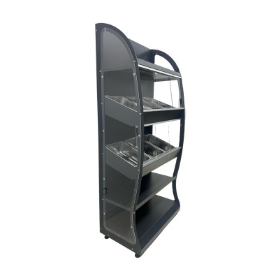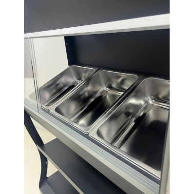 La finition en gris anthracite RAL 7016 lui confère un aspect moderne et élégant, s’intégrant parfaitement à tout type de décoration intérieure, que ce soit pour des espaces commerciaux ou des établissements gastronomiques.